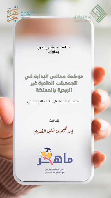 🎓 صناعة الباحثين في القطاع غير الربحي! نبارك لمديرنا التنفيذي الاستاذ إبراهيم خليل القديم تخرجه من مشروع ماهر لتأهيل الباحثين في القطاع غير الربحي ومشاركته المتميزة في البرنامج، حيث قدم مشروع تخرج بعنوان: "حوكمة مجالس الإدارة في الجمعيات العلمية غير الربحية التحديات وأثرها على الأداء المؤسسي". نؤمن بأن تأهيل الكفاءات البحثية يعزز من تطوير القطاع، ويرفع مستوى الحوكمة والكفاءة المؤسسية.