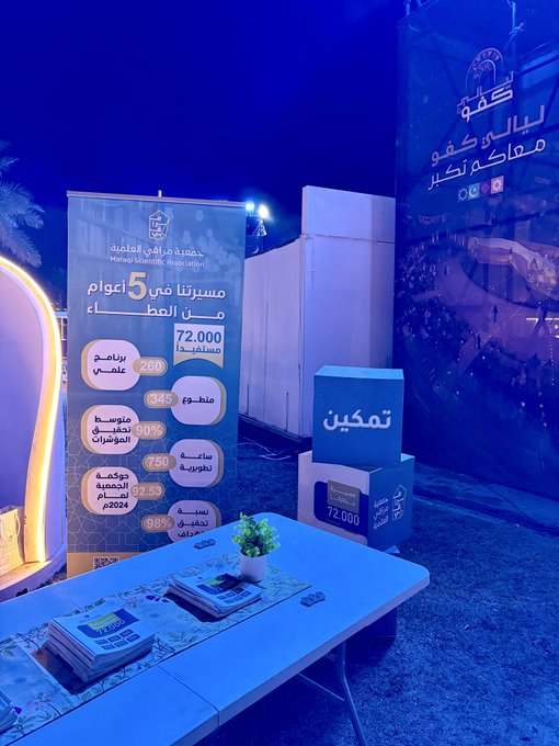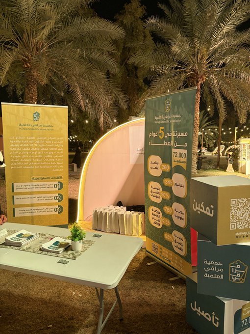 جانب من مشاركة جمعية مراقي العلمية في ركن يهدف إلى التعريف بالجمعية وما تحتوي من برامج وأنشطة في مهرجان #ليالي_كفو في نسخته الثالثة المُقام في منتزه الملك عبدالله البيئي
